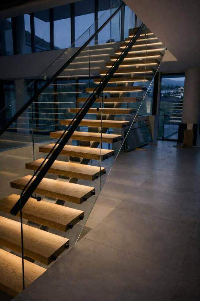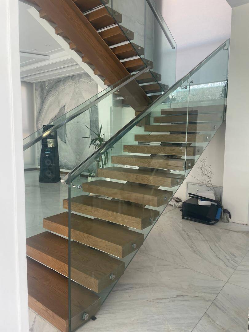 اجرای نرده شیشه ای ، راه پله بالکن ویلا